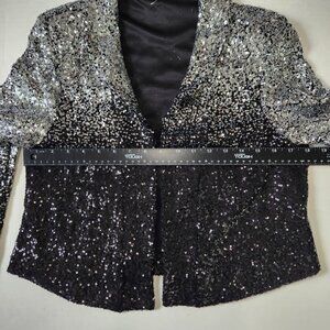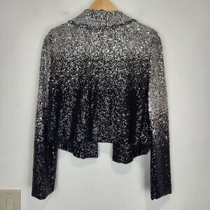 Adore Short Sequin Jacket Sample Size M Silver Black Ombre Open Front Lined