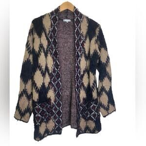 Adore Women’s Open Cardigan With Pockets Black Tan Maroon Size Medium