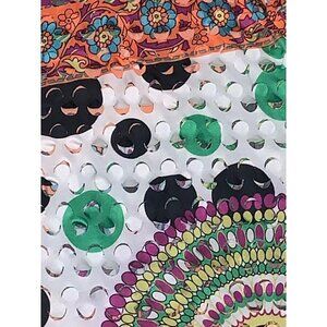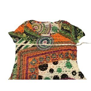 Really pretty super cool dress with tab cut outs all over the dress, would look great with a solid cover bodysuit under it. Could be a swimsuit cover. Great pre-owned condition. Ships from smoke free home.