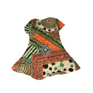 Adore Womens Size L Multi Colored Cut Out Tab Shift Dress Boho Mod Hippie
