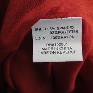 Beautiful designer brand soft suede feel military look jacket. Bought from a high end boutique. New with tags, never worn, perfect condition. Laying flat the length with ruffle is approximately 24-27 inches. Armhole to armhole is approximately 19". Size M runs a little big in my opinion. Material is 8% spandex and 92%polyester. Lining 100% rayon. Lovely burnt orange color with silver buttons. Statement piece!