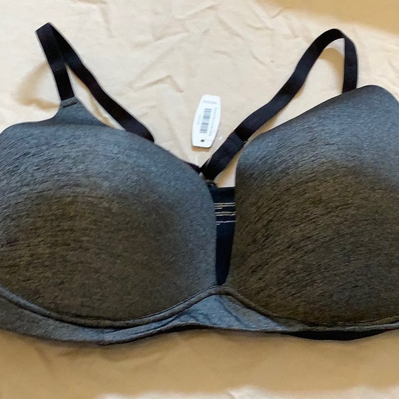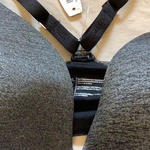 black and grey padded criss cross bra
