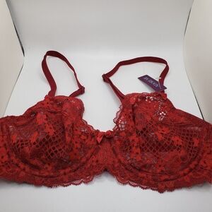 Adore me red lace see through underwire bra 32C NWT