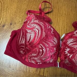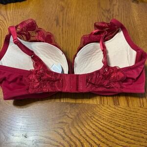 Adored by Adore Me Red Lace Overlay Underwire Bra Women’s Size 32D Heavy Padding