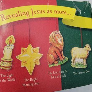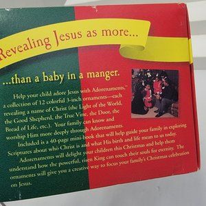 HELP YOUR CHILD ADORE JESUS WITH ADORENAMENTS, A COLLECTION OF 12 COLORFUL ABOUT 3" ORNAMENTS EACH REVEALING A NAME OF CHRIST. (Ornaments described below) AND A 40-page mini book that will help guide your family exploring the scriptures and what his birth and life mean today.
