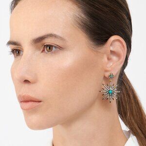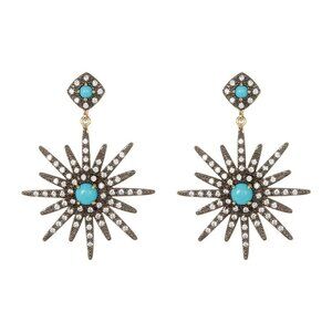 14K Yellow Gold Plated Turquoise & Swarovski Crystal Accented Starburst Earrings