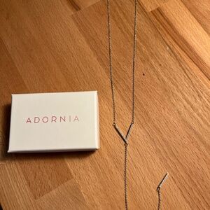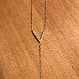 AdorniaSterling Silver Swarovski Crystal Accented V Necklace - NEW