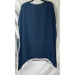 Adreamly Blue Chiffon White Tassel Kaftan Beach Cover Up Size Small