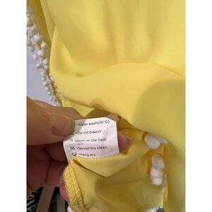 Adreamly OS Bathing Suit Cover Up Yellow with White Pom Pom Fringe One Size