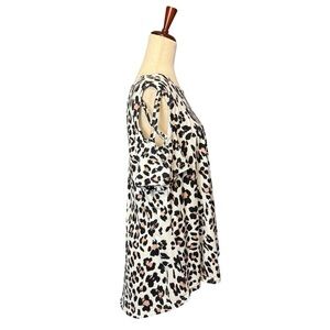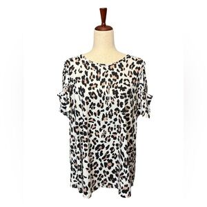 Stylish leopard print top with trendy cold shoulder design. Perfect for casual outings. Hi-low profile. Like new.