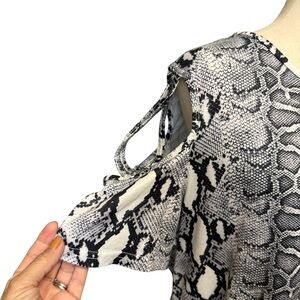 Stylish snake print top with trendy cold shoulder design. Perfect for casual outings. Hi-low profile. Like new.