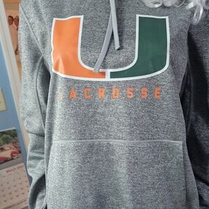 Embrace both comfort and style with this officially licensed University of Miami Lacrosse hoodie by Adrenaline. Designed in San Diego and crafted with premium materials, this hoodie is made to stand out. Featuring the iconic Miami "U" logo in bold orange and green, this piece is perfect for both athletes and fans alike.