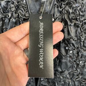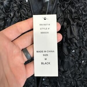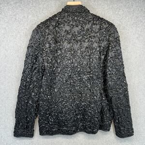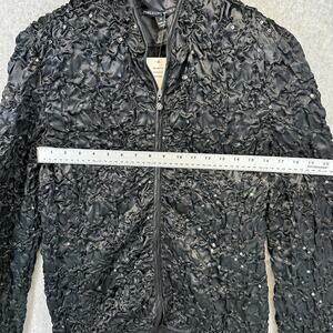 Adressing Woman Jacket Womens Medium Black Full Zip Embellished Crinkle Sequin
