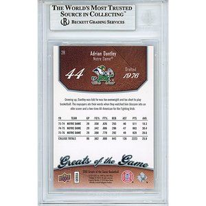 Adrian Dantley Autographed Notre Dame Fighting Irish 2009-2010 Upper Deck Greats of the Game Basketball Card #28.