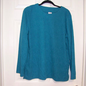 Teal colored textured long sleeve blouse with matching stretch waist pants size L/A C-001