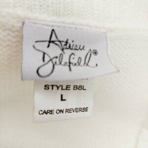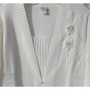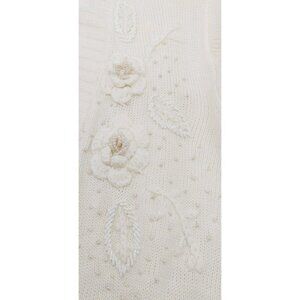 Adrian Delafield Sweater Size Large Beaded Knit Cream Faux Tank Pearl Buttons
