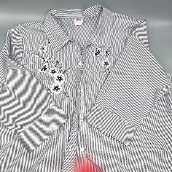 Embrodered Adrian Delafield blouse with seams in the back and front for figure flattering look. 3/4 sleeve with cuff.