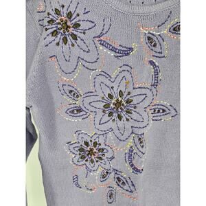 Adrian Delfield Women's Purple Rhinestone Long Sleeve Crew Neck Sweater Size S