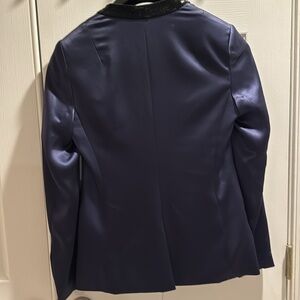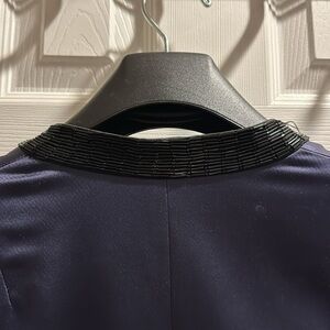 Adrian Mattox Silk Blend Navy Blazer with Black embellished collar