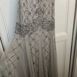Adrian Papell Fully Beaded Godet Gown with Sheer Sleeves