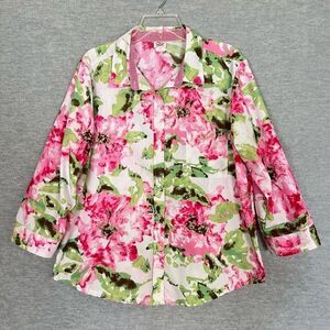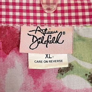 Adrian Delafield Floral Gingham Top Womens XL Button Up Shirt Easter Spring Country