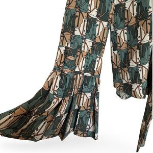 A stunning Adriana Degreas blouse crafted from 100% silk with an equestrian-inspired horse head print in earthy tones of green, tan, ivory, and rust. Designed and produced in Brazil, this luxury blouse embodies Adriana Degreas’ signature sophisticated yet playful style.