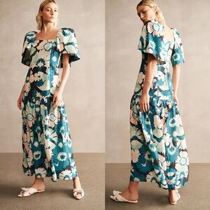 Adriana Degreas Flower Power Puff Sleeved Maxi Dress
