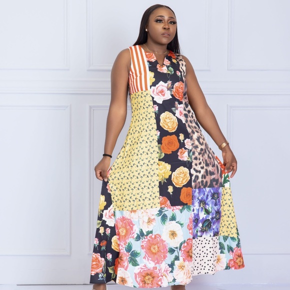 Adriana Multicolor Sleeveless Patchwork Dress