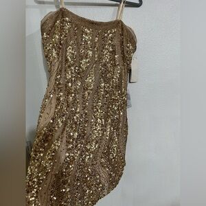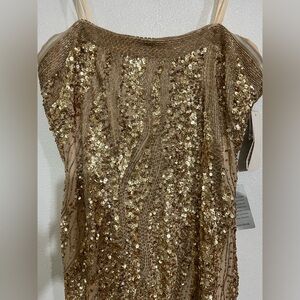 Adriana Papel evening, strapless sequin gold dressSz 14 NWT