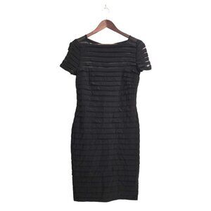 Adriana Papell Black Partial Tuck Bandage Stretch Mini Sheath Dress Sz 10