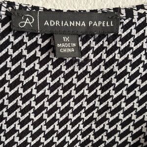 Adriana Papell Black and White Houndstooth Long Sleeve Blouse 1X