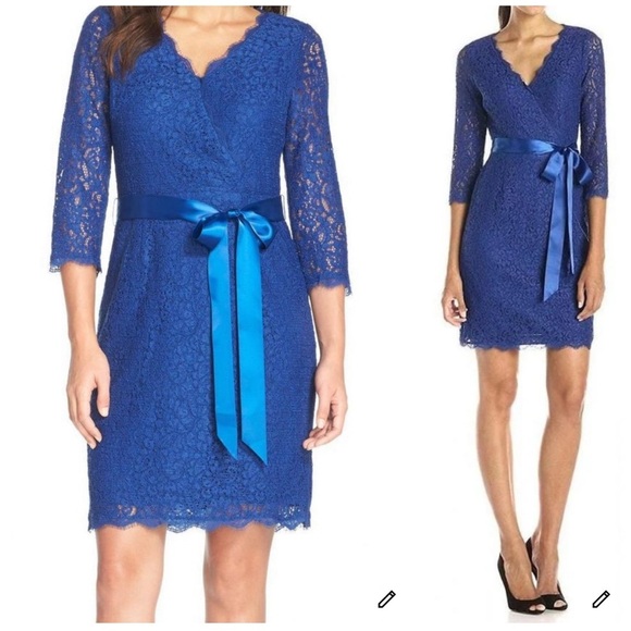 Adriana Papell Blue Lace Sheath Dress Size 8 3/4 Sleeve