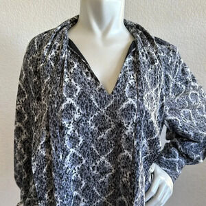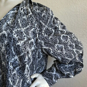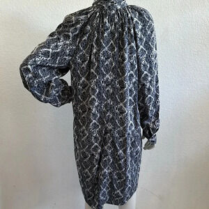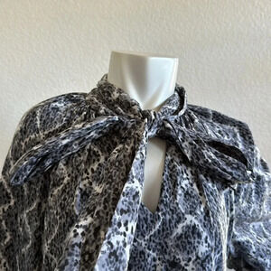 This pleated sleeve dress is designed with a chic tie-front, while the lined fabric and gray & white geometric prints hue exude professional flair.