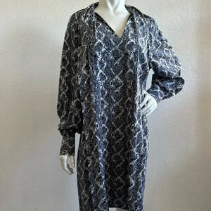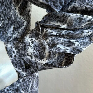 Adriana Papell Gray & white Tie-Front Lined Longsleeve Sheath Dress