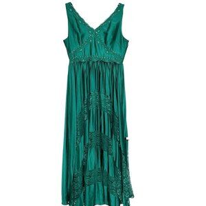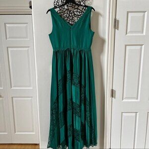 Adriana Papell Lace Sequin and Beaded Kelly Green Maxi Dress 14P