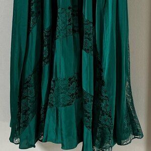 Beautiful jewel color special occasion dress with lace sections at the skirts