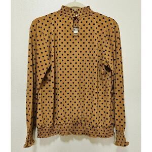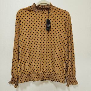 Adriana Papell NWT M Brown Black Polka-dot mock neck blouse. Bell sleeve Stylish