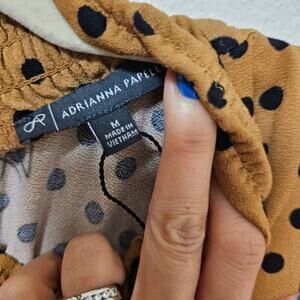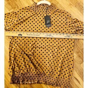 Adriana Papell NWT M Brown Black Polka-dot mock neck blouse. Bell sleeve. Elastic. Stylish. Career. Professional. Lawyer. Office attire. Formal. Must see All pictures for the details and measurements. Ships Fast. Offers Welcome.