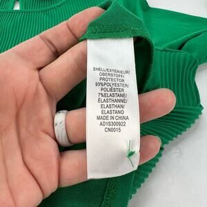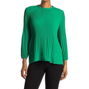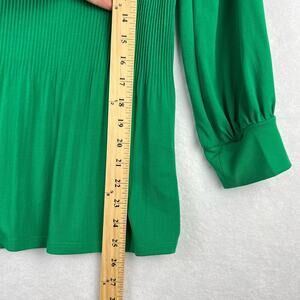 Adriana Papell Pleated Georgette Crepe Blouse Kelly Green Keyhole Blouse Small