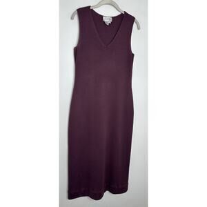 The Adriana Papell Purple V Neck Sleeveless Wool Blend Midi Dress in size medium is a stylish and versatile piece perfect for various occasions. Made from a comfortable wool blend fabric with a knit texture, this sweater dress features a classic V-neckline and a pullover closure for easy wear. The beautiful purple color adds a touch of elegance, making it suitable for travel, parties, or casual outings during the winter, fall, or spring seasons. The 90s-inspired design from the reputable brand Adrianna Papell adds a trendy and sophisticated flair to this wardrobe essential.