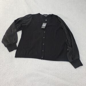 Adriana Papell Sweater Womens Large Cardigan Balloon Sleeve Button Up Black Knit. New with tags. See pics for measurements and details.