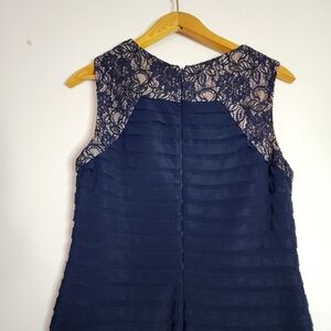 Adriana Papell Women's Size 12 Navy Blue Lace Sheath Dress Shutter Pleated