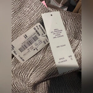 Adriana Papell,6, NWT, champagne sheen puff collar jewel button front 3/4 sleeve