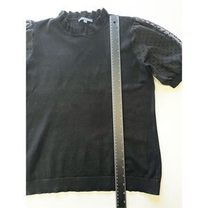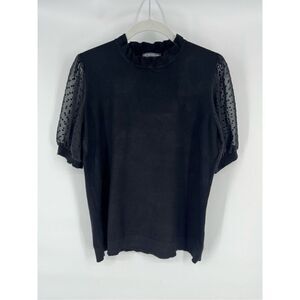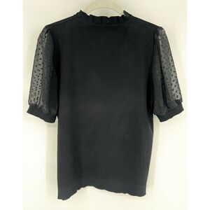 Adriana Papell Swiss Dot Sheer Sleeve Ruffle Neck Black Sweater Top Size Medium