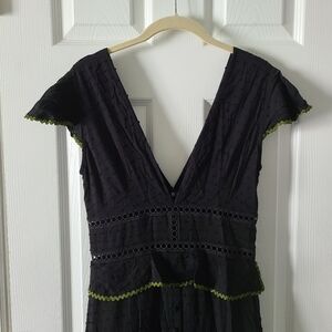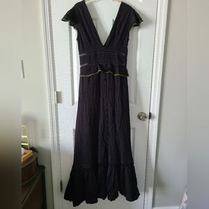 Adriana Roverato Dwiss Dot Maxi With Coverd Buttons and rickrack Trim in Size S