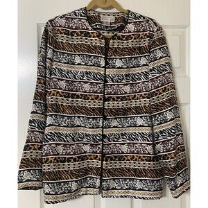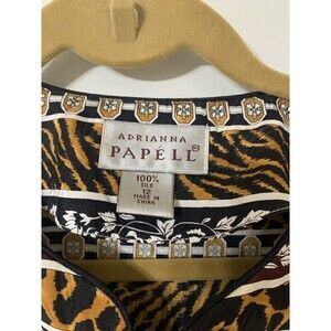 Adrianna Appellate 100% Silk Blouse Size 12 Floral And Animal Print