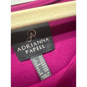 Elegant and stylish, this Adrianna Papell dress features a pink sangria hue with a chic banded sheath design and a delicate chiffon ruffle cape. Perfect for special occasions or cocktails, it offers a flattering fit and timeless appeal.