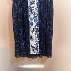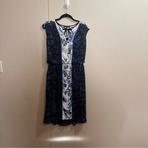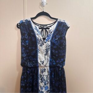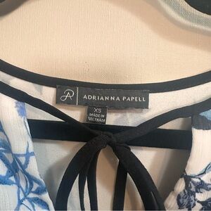 Adrianna Papel Summer Border Print Dress Blue Floral Chiffon Size XSmall