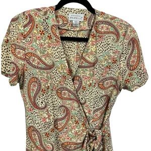 Adrianna Papel Vintage 100% Silk Paisley Wrap Dress Size 8 Feminine Old Money