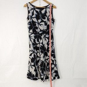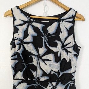 Adrianna Papell 10 Linen Blend Black White Blue Floral Sleeveless Midi Dress